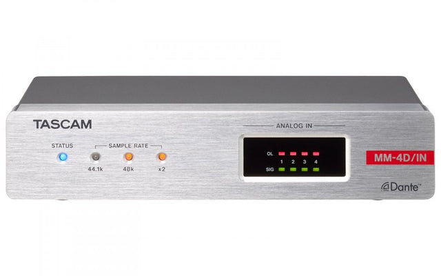 The TASCAM MM-4D/IN-E is a compact and versatile 4-channel mic/line input Dante converter, tailored for professional AV installations and networked audio environments. Featuring Euroblock connections and phantom power support, this half-rack unit delivers clean, studio-grade audio with full 24-bit/96kHz resolution and robust DSP processing onboard.