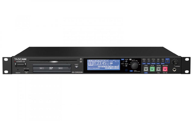The TASCAM SS-CDR250N is a professional-grade 2-channel CD, SD, and USB recorder/player designed to streamline high-quality audio capture, playback, and file management across a networked environment. Ideal for broadcast studios, conference halls, and corporate AV setups, this next-generation unit integrates advanced automation, network control, and redundancy features to ensure efficient operation with minimal oversight. With support for recording up to 96kHz/24-bit and compatibility across multiple media types-including CD, SDXC, and USB flash drives-the SS-CDR250N combines versatility with reliability.