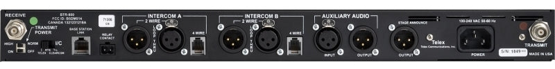The BTR-800 wireless intercom is a serious performer too. With technology leaps like Intelligent Power Control™ combination tone code/RF noise squelch and DSP digital audio processing, this is one wireless intercom that sounds great, even at a great distance! The BTR-800 is fully compatible with Telex, RTS and Clear-Com hardwired communications systems right out of the box. If your application requires the highest performance and utmost reliability, you need the new Telex Radiocom BTR-800 wireless intercom system.