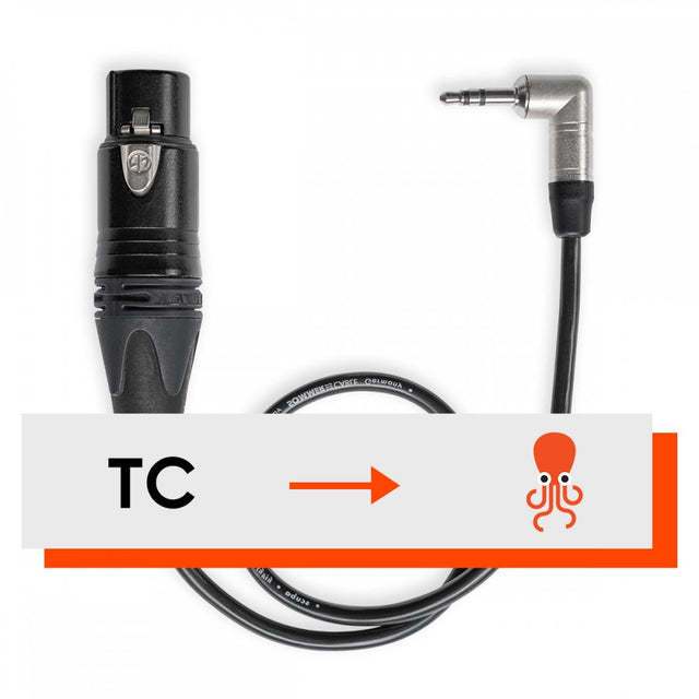 XLR (F) TO TENTACLE - TIMECODE CABLE This cable feeds timecode from a device that uses a 3-pin XLR output into any Tentacle device. You need this cable if you want to jam-sync Tentacle SYNC E, TRACK E, ORIGINAL or TIMEBAR devices from external timecode sources with XLR outputs such as studio environments (e.g. Black Magic Design - HyperDeck Studio Pro).