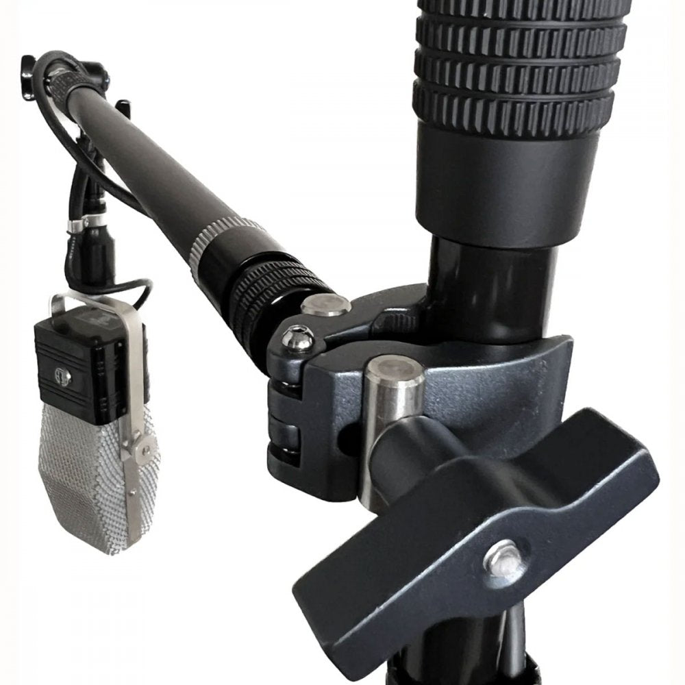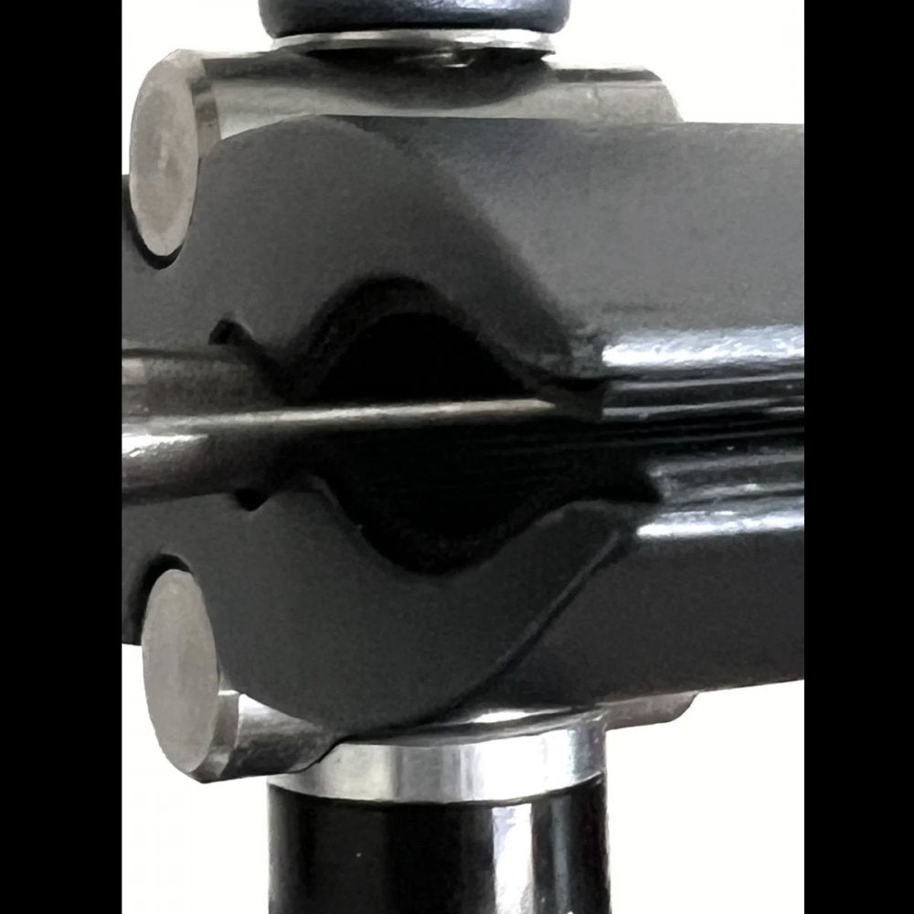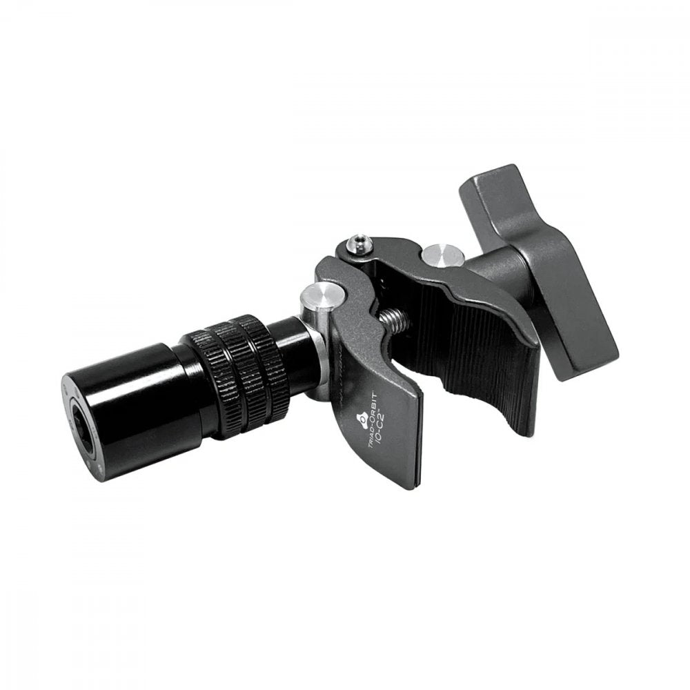 iO-C2 iO-Equipped Mini Clamp is a different take on our iO-C clamp. Unlike the iO-C, the iO-C2 has two possible points of connections; a larger opening for securing to stands, booms, iO connectors, or a smaller opening, which allows for extremely stable connections to smaller rod or bar stock. It is shown clamping to the stem of an M3. The inner jaws have rubber coating to not mar surfaces. While the iO-C is great for clamping devices to round shafts with short extensions, iO-C2 excels at securing longer extensions or heavier devices from stands. iO-CM clamping range is 8mm-38mm (.31" " 1.5")