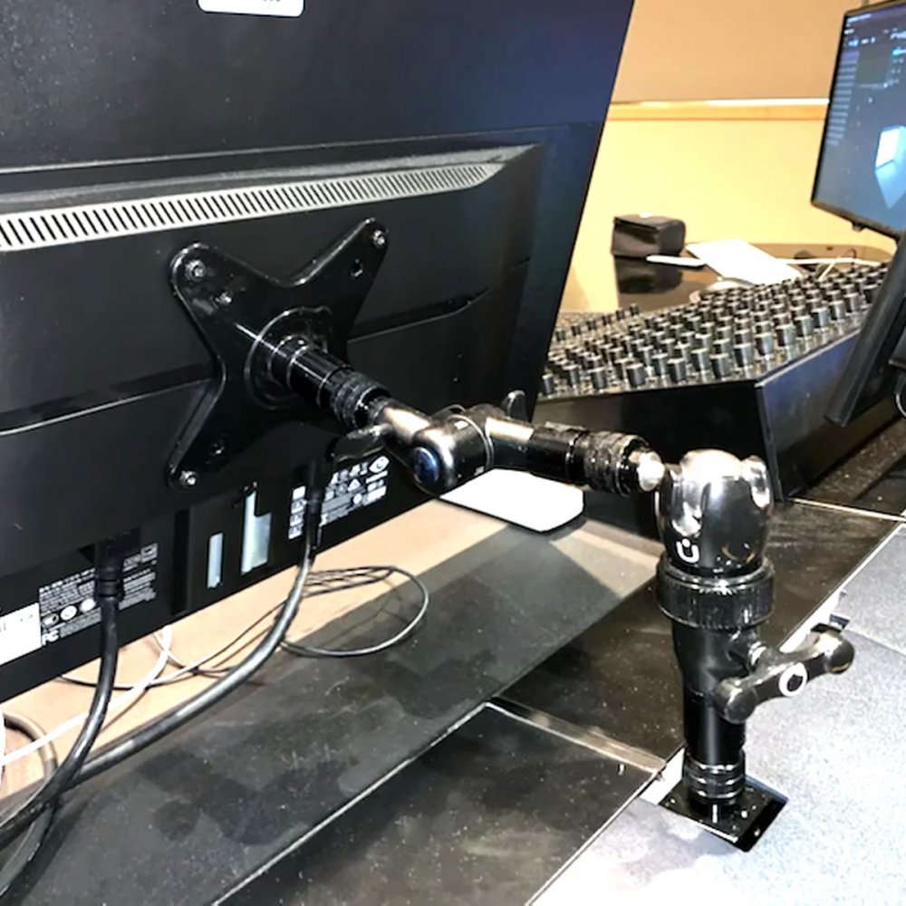 iO-S6 opens creative options for your Avid S6 console. iO-S6 connects to the rear of the console on the mounting frame and provides iO (In/out) connectivity to add your favorite accessories, such as: Speakers, cameras, microphones, laptops, sheet music. Pair with the following Triad-Orbit products; iO-A1A or iOA2A and M2 for camera mounting, iO-A2A and OM boom for microphones, iO-Desk for laptops, notes, sheet music. iO-S6 enhances your workflow by providing accessories quickly and easily with a simple click.