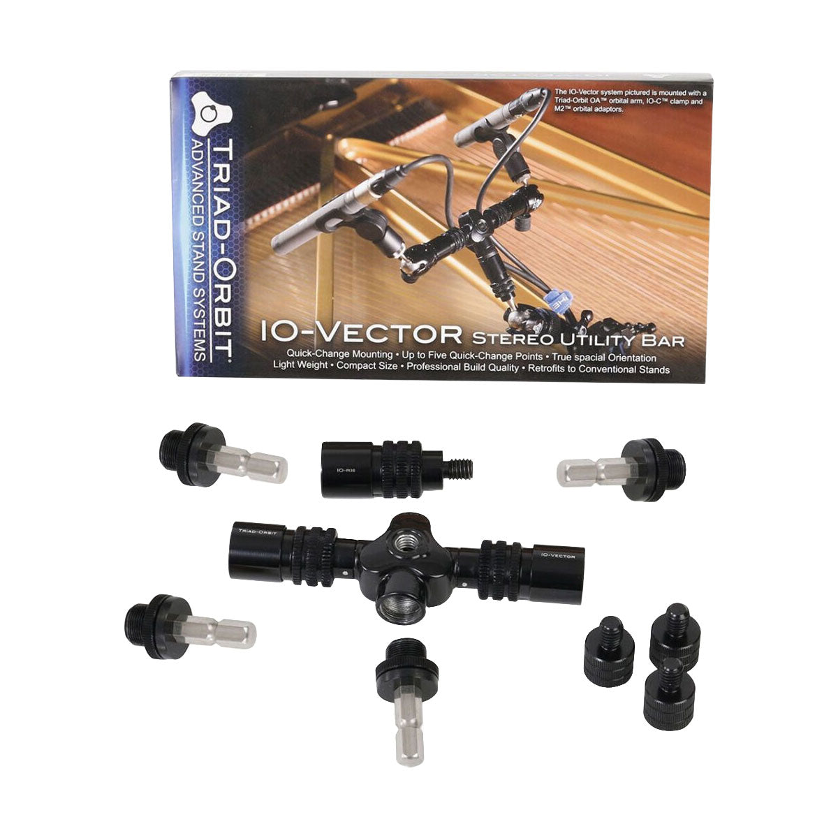 Compatibility: Triad-Orbit iO system, 5/8"-27 threads, 1/4"-20 and 3/8" devices with adapter
