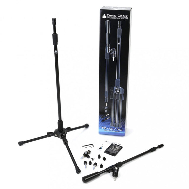 The T2 / OM / M2 is a prepackaged bundled system. We paired the T2 tripod with the Orbit Mini (OM) boom creating a great performance bundle at an even lower price. It is comprised of our core components (Triad/Orbit/Micro) and designed to give the benefits of a complete Triad-Orbit experience in a cost savings bundle. At 12 lbs, T2/OM/M2 is a great system for frontline performance, lighting packages, and general miking duties.