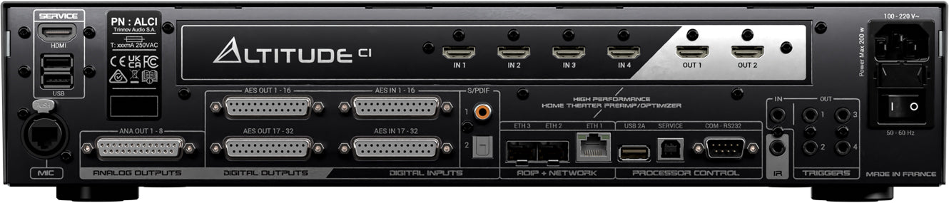 The Trinnov AltitudeCI is a high-performance AV processor designed to bring fully networked audio into modern home cinema and custom integration environments. Built with flexibility in mind, it supports a wide range of system sizes and layouts, making it suitable for anything from refined living room setups to large private theaters. Its streamlined 2RU design fits neatly into rack installations while delivering the advanced processing power and reliability that Trinnov is known for.