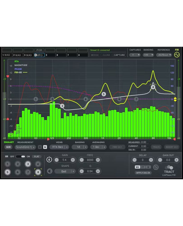 You can run TRACT inside the eMotion LV1 mixer, SuperRack, or your favorite DAW. It includes both minimal-phase and linear-phase FIR filters, plus an 8-band parametric EQ, letting you tailor your system's sound precisely. TRACT also supports up to 8 snapshots for comparing different mic positions, and lets you create custom reference curves. Use it to align speakers, clean up frequency response, or make sure your subs and tops are working together perfectly. With TRACT, what you hear is what your audience gets-clean, balanced, and ready to impress.