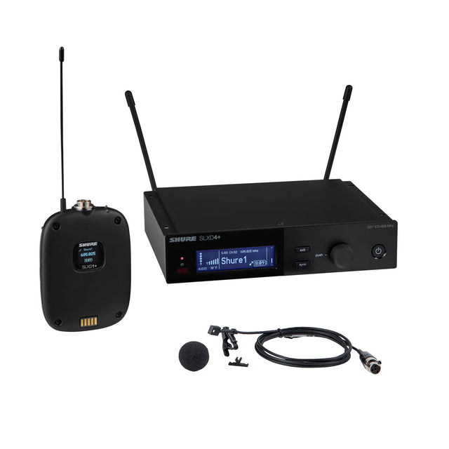 The paired SLXD1+ bodypack transmitter connects to the included WL93 omnidirectional lavalier microphone, a compact mic designed for discreet placement on clothing or costumes. The WL93 offers a natural, wide pickup pattern that captures speech clearly without requiring precise mic positioning which makes it ideal for presenters and performers who move freely.