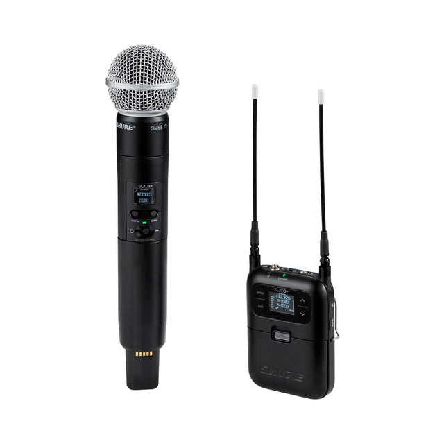 The Shure SLXD25+/58-G57 is a portable digital wireless handheld microphone system purpose-built for videographers, content creators, journalists, and mobile sound professionals who need broadcast-quality audio in a compact, field-ready format. Combining the industry-standard sound of the SM58® dynamic cardioid capsule with the versatility of a camera-friendly receiver, this system is ideal for interviews, ENG, live streaming, and location shoots.