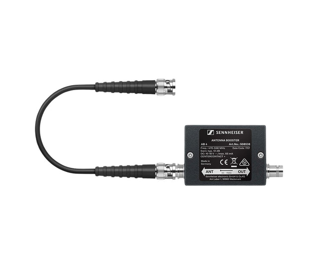 The AB 4-AW+ is a compact inline antenna booster designed to maintain strong, reliable signal performance in wireless audio setups. Built with BNC connectors, it integrates easily into existing systems and helps counteract the signal loss that can occur when using long antenna cable runs. Its filtered design supports clean signal transmission, making it a practical addition for maintaining consistent audio quality in demanding environments.