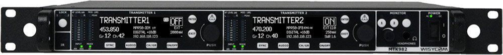 The Wisycom MTK982 is a versatile dual wideband, stereo IEM/IFB transmitter. The MTK982 provides the highest audio quality, extremely low spurious emissions, and is capable of generating multiple types of RF modulations.