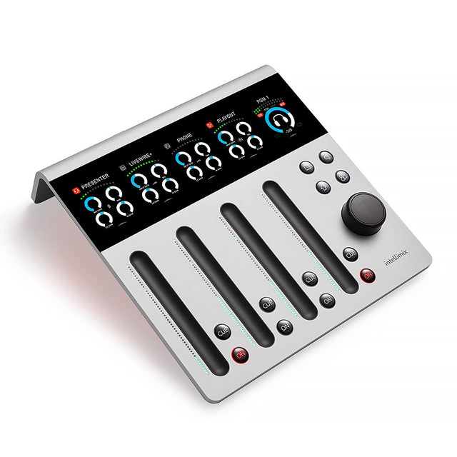 The Yellowtec Intellimix 2 Pro is a high-performance 8-channel desktop audio mixer designed for professional audio mixing. It features advanced Audio-over-IP (AoIP) connectivity, including AES67, Livewire+, RAVENNA, and more. The G-Touch© faders provide tactile, intuitive control, while the multi-touch widescreen offers a streamlined interface for settings and adjustments. With user profiles, remote control capabilities, and versatile I/O options, it's ideal for complex audio tasks in broadcast, production, or newsroom environments. This mixer delivers a powerful, user-friendly experience for managing diverse audio workflows.