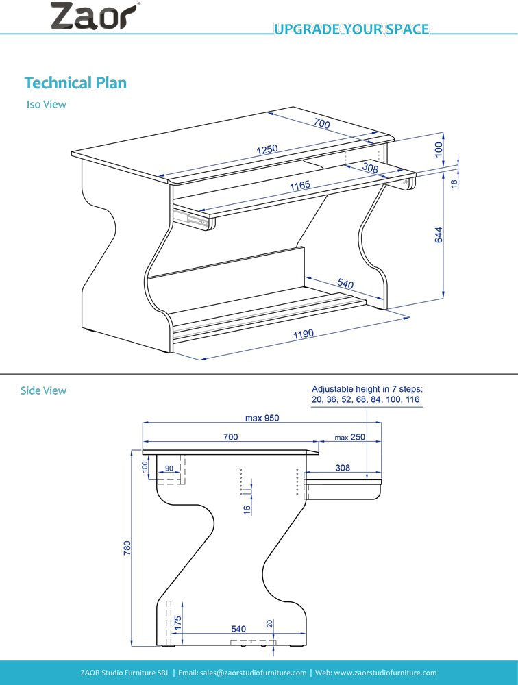 The desktop offers a large amount of real estate for computer screens and desktop devices like audio interfaces or controllers. If you work with a lot of 19-inch gear, you can attach one or two Miza Gripracks to the desk, giving you up to eight units of desktop rack space. A robust and height-adjustable pull-out tray adds extra space for devices like a 61 keyboard; with the new update, the tray has even gained usable width without changing the overall footprint of the desk. You could also just put your keyboard and mouse on the tray and use the desktop for video controllers or a graphic tablet " with its versatility, Miza Jr FLEX becomes exactly what you need.