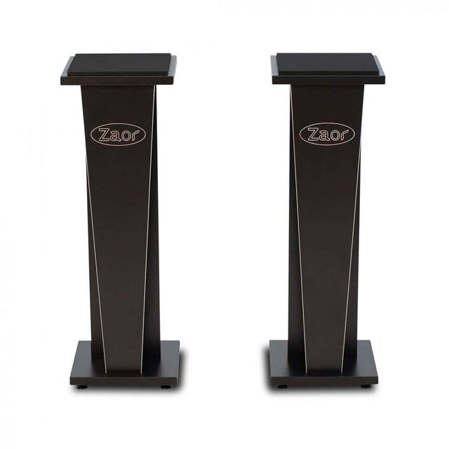 ZAOR MIZA V-Stands was designed with two main criteria in mind: They should be affordable and yet designed to the best standards of technical performance and design. We chose the same materials as for the other items in the MIZA range, but with two particulars, that make it a very professional and highly useable speaker stand: We added a pad of AERSTOP on top of the stand, that helps isolate the speaker from the stand, reducing the propagation of lower frequency content through the speaker to the floor and thus the room. They are available in two fixed heights!