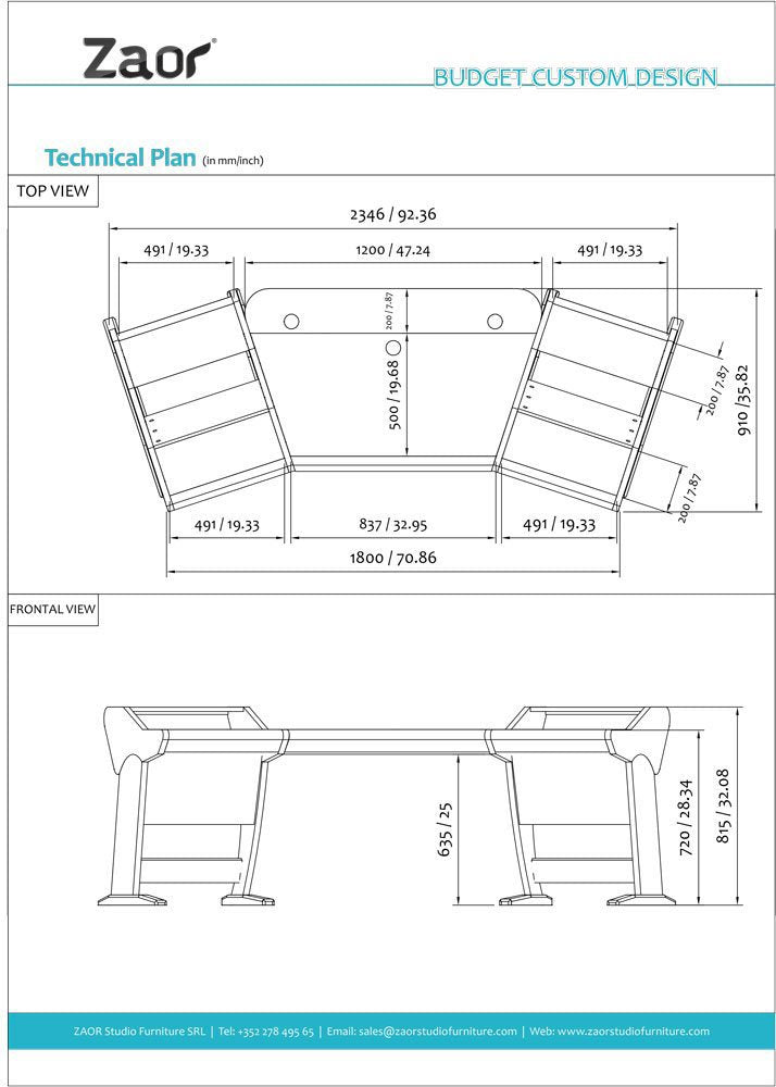 Professional centerpiece for the modern hybrid studio, 92 inches wide angled work surface - two 6 rack units solid wood applications, 92½ x 34 x 32 inches
