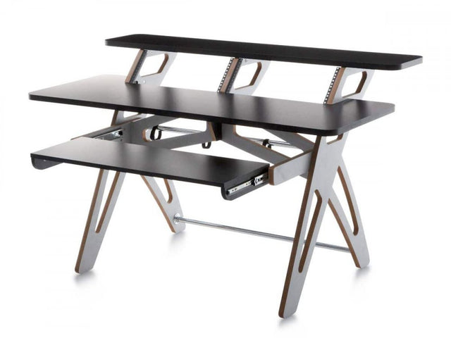 When space is an issue, Yesk is the solution. With its very compact footprint, this production desk creates a lot of room on three levels, and further provides rack space for your outboard equipment. While some larger workstations can feel like they dominate a room, the slender design of Yesk always leaves breathing room for comfort.