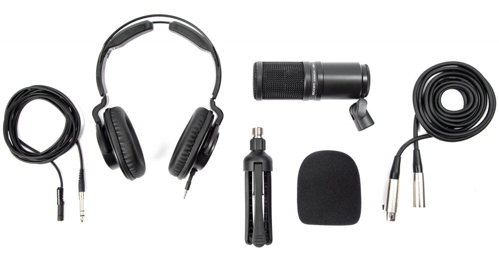 The ZDM-1 Podcast Mic Pack includes a broadcast-style dynamic mic, professional closed-back headphones, an adjustable tabletop mic stand, windscreen and 3-meter mic cable.