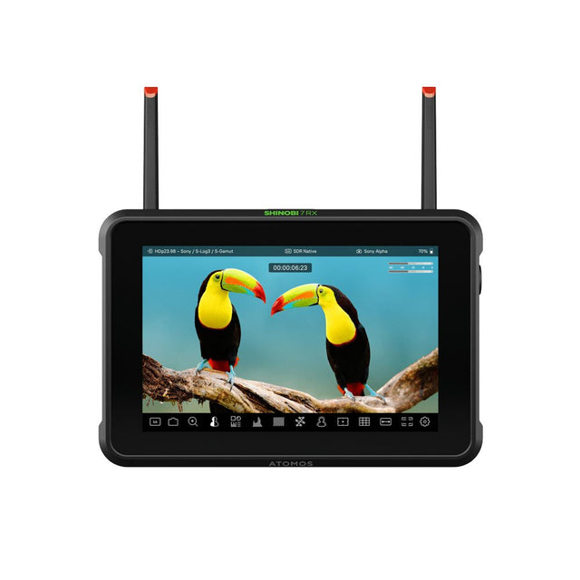 L'Atomos Shinobi 7 RX est un moniteur HDR 7 pouces ultra-lumineux et robuste, conçu pour les cinéastes et les équipes de tournage professionnels. Doté d'un écran tactile HDR de 2 200 nits, il permet le contrôle de la caméra via USB-C, la mise au point tactile et une suite complète d'outils de surveillance, incluant la forme d'onde, l'histogramme, les fausses couleurs, les zèbres, le focus peaking et la prise en charge des LUT. Le Wi-Fi 5G intégré permet une surveillance vidéo sans fil à faible latence (< 60 ms) avec les émetteurs Atomos TX ou les flux RTSP H.264, prenant en charge jusqu'à 4 récepteurs sans fil simultanément. Avec ses entrées/sorties HDMI et 3G-SDI, ses deux emplacements pour batterie NPF, son calibrage intégré et son châssis ABS léger, le Shinobi 7 RX offre une polyvalence inégalée comme moniteur de réalisateur, écran client ou outil de mise au point.