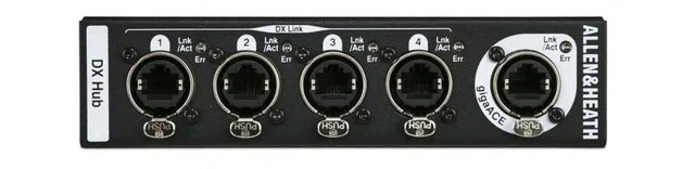 Jusqu'à deux extensions DX peuvent être connectées à chaque port DX Link, permettant d'ajouter jusqu'à 128 entrées et 64 sorties distantes au système. Plusieurs hubs DX peuvent être utilisés pour une extension supplémentaire ou une double redondance (dLive uniquement).