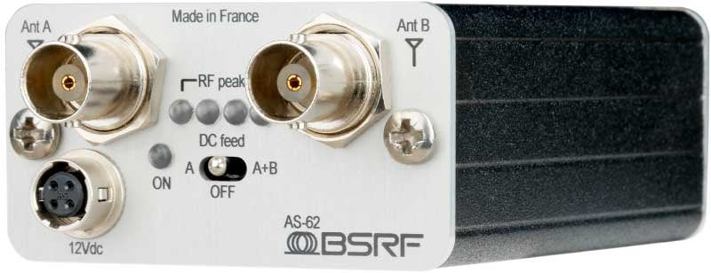 L'AS-62 est désormais équipé d'un indicateur de crête RF à deux niveaux pour vous assurer que vous ne recevez pas de signaux RF trop forts. Cela vous aidera à sécuriser votre réception. Les antennes passives et actives peuvent être branchées sur les entrées BNC grâce à la fonction d'alimentation CC. Une limitation de courant individuelle permet de détecter tout problème d'alimentation CC (consultez le manuel pour plus d'informations).