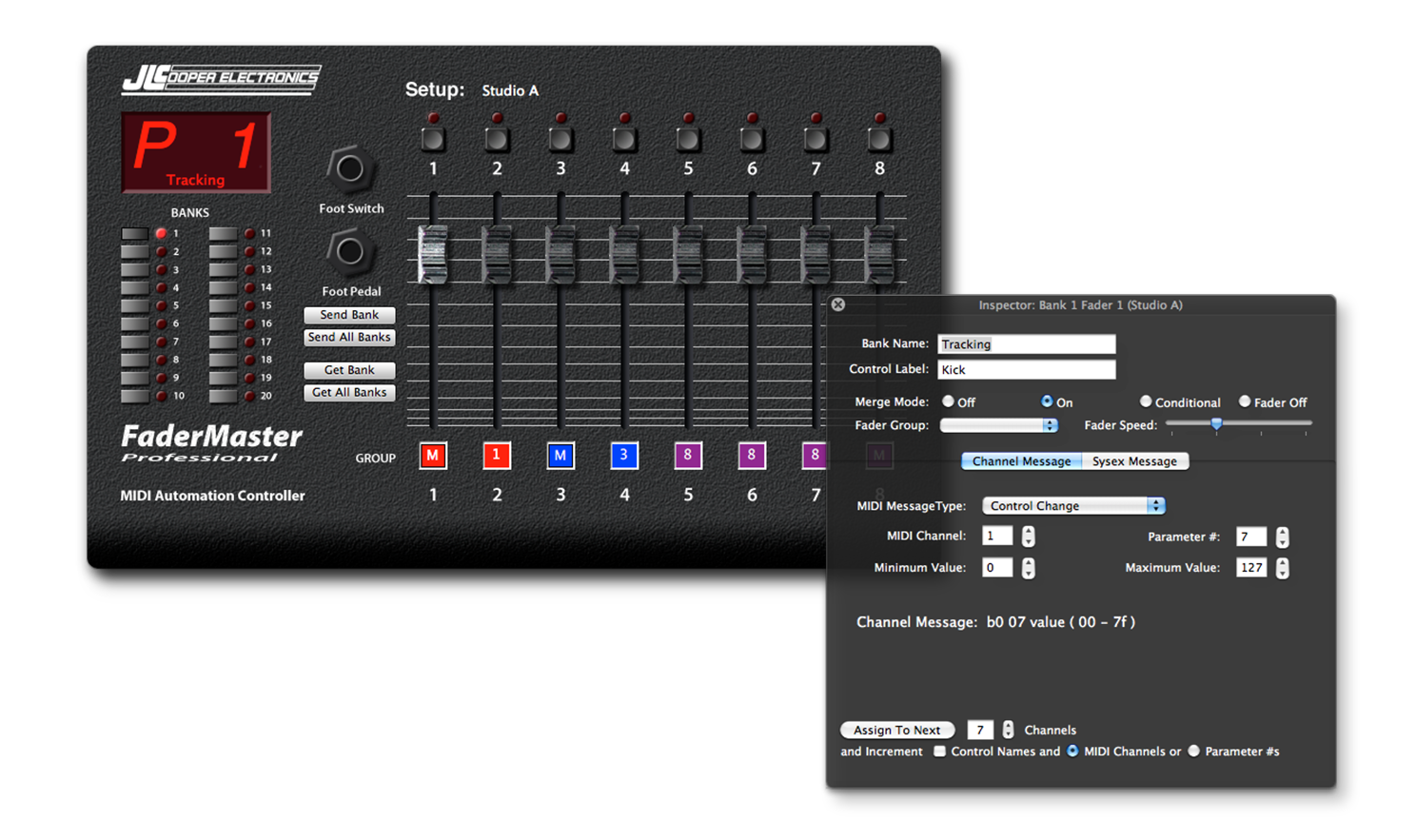 Le FaderMaster Professional comprend 20 banques utilisateur programmables pour stocker des configurations personnalisées, ainsi que 50 banques préréglées d’usine conçues pour contrôler des synthétiseurs classiques et des appareils MIDI. Une flexibilité supplémentaire est apportée par des entrées programmables pour interrupteurs au pied et pédales, permettant un contrôle mains libres des paramètres sélectionnés. Plusieurs unités peuvent également être reliées ensemble pour créer une surface de contrôle plus grande lorsque plus de faders sont nécessaires.