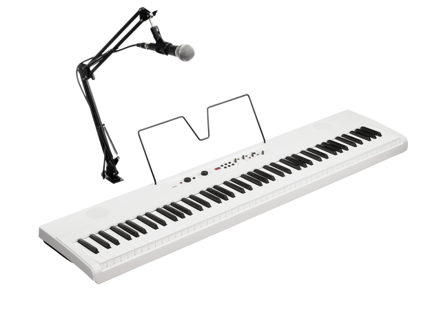 Le KORG Liano LIVE! est un piano numérique compact conçu pour les créateurs qui souhaitent une manière simple de jouer et de partager leur musique en ligne. Il est livré avec les outils essentiels, notamment un microphone, un support, un câble USB-C et une table de mixage audio intégrée, facilitant la connexion à un téléphone intelligent ou un ordinateur. L’installation simplifiée élimine le besoin d’équipement supplémentaire ou de connaissances techniques, aidant les utilisateurs à démarrer rapidement et en toute confiance.