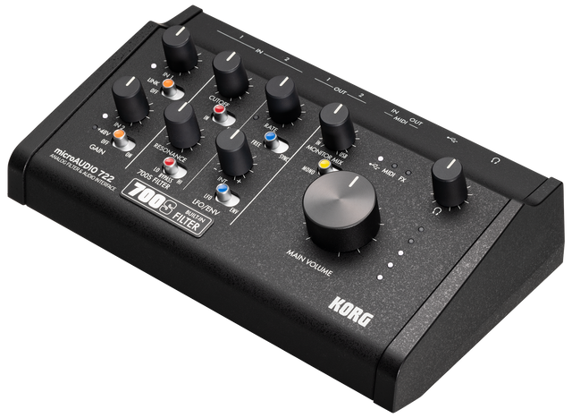Le KORG microAUDIO 722 est une interface audio compacte qui allie enregistrement haute résolution et façonnage sonore manuel, conçue pour les artistes qui apprécient à la fois la clarté et le caractère. Construit avec des composants de qualité supérieure issus des mélangeurs et convertisseurs haut de gamme de KORG, il offre un son clair et ouvert avec une large marge de manœuvre dans un format adapté au bureau. Parallèlement, il intègre un filtre analogique qui apporte une mise en forme tonale classique directement dans votre flux de travail, offrant des textures sonores qui dépassent le traitement numérique.
