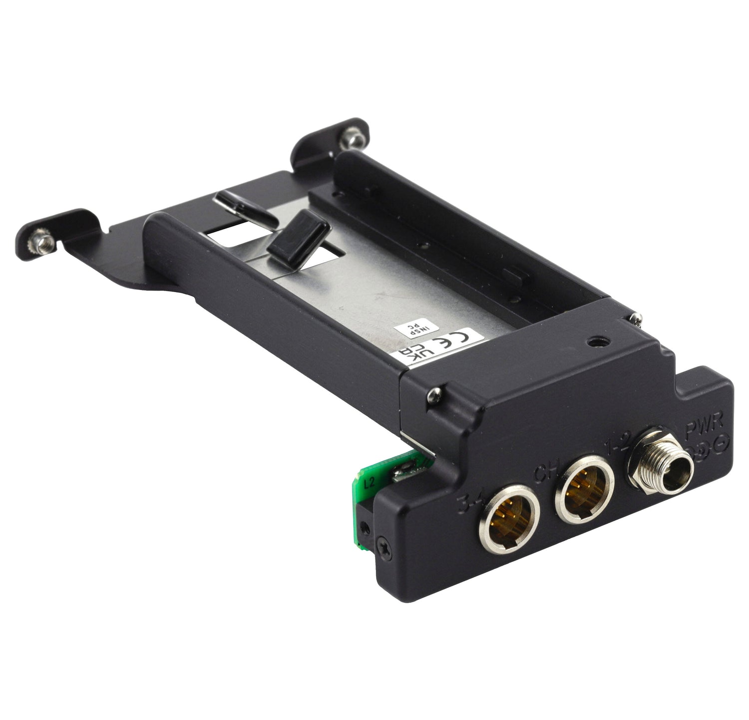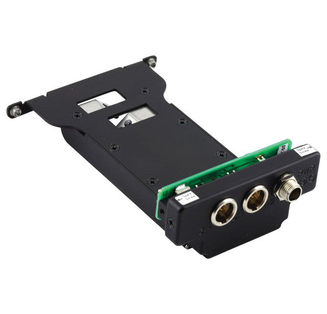 Le Lectrosonics DSR4BATTSLEDBOTTOM est un adaptateur de batterie à montage inférieur spécialement conçu pour le récepteur numérique à quatre canaux DSR4 à insertion par fente, conçu pour intégrer parfaitement le récepteur sous une caméra. Cet adaptateur offre non seulement un support sécurisé pour les batteries de type L ou M, mais garantit également que l'écran LCD et le panneau arrière du DSR4 soient correctement orientés lorsque l'appareil est positionné sous une caméra, ce qui est idéal pour les configurations à insertion par fente ou autonomes en production sur le terrain.