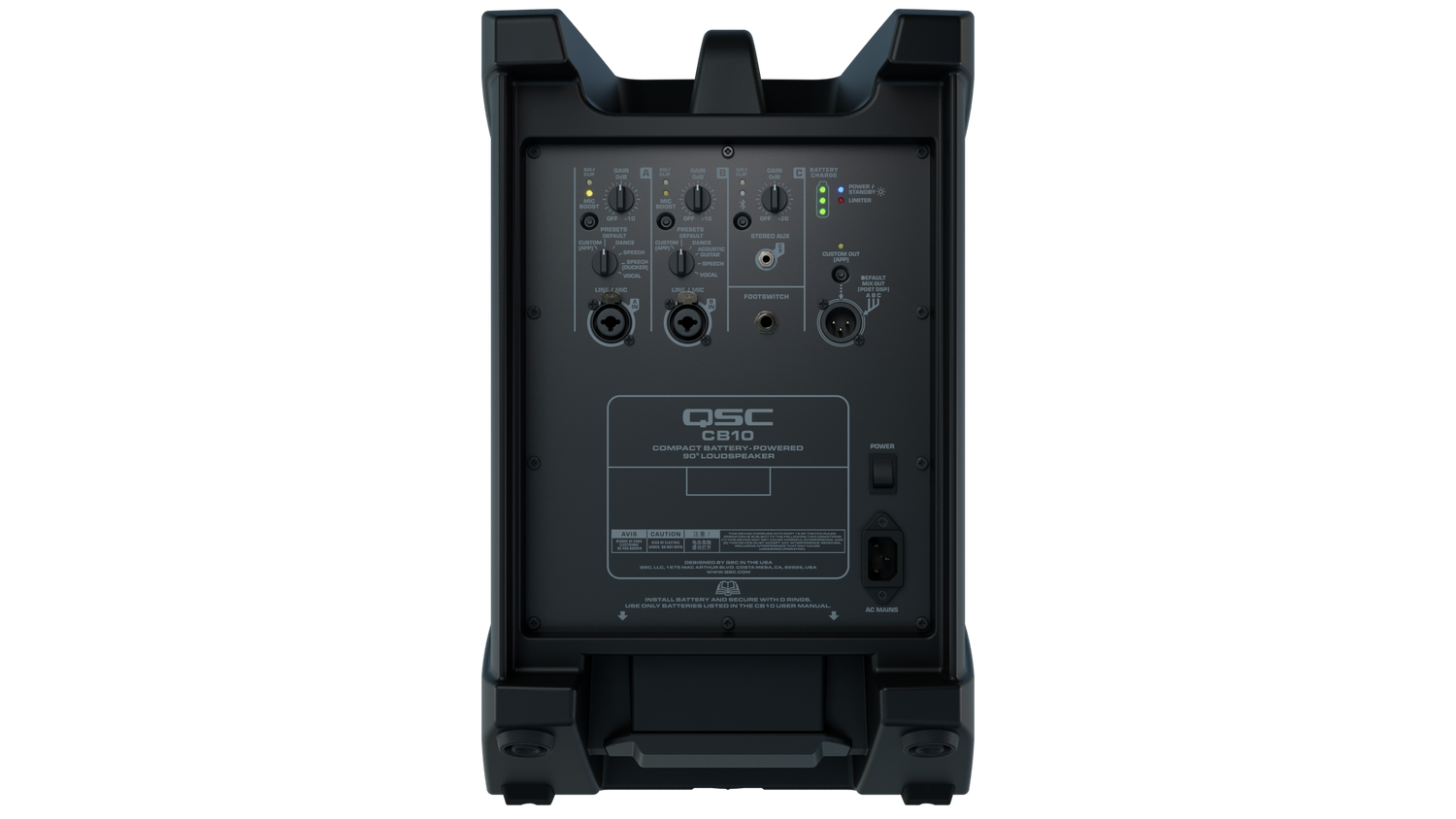Conçu avec soin pour allier commodité et contrôle, le CB10 supporte l’alimentation secteur et sur batterie, lui permettant de s’adapter aux environnements intérieurs comme extérieurs. Il peut être commandé à distance via l’application QSC Loudspeaker Control, qui simplifie la personnalisation et le réglage du système. Parmi les autres caractéristiques, on trouve l’appairage stéréo sans fil True Wireless Stereo (TWS) pour des configurations à deux enceintes sans faille, un réglage du délai de salle jusqu’à 200 ms pour une couverture sonore répartie, ainsi que des options de montage flexibles incluant l’inclinaison au sol, le montage sur perche ou sur pied. Avec une construction robuste et une garantie de 6 ans (1 an pour la batterie), le CB10 est conçu pour répondre aux exigences du terrain tout en offrant une performance fiable partout où le son est nécessaire.