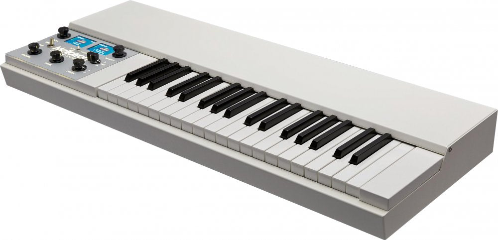 Le Mini Mellotron M4000D a été développé pour répondre aux besoins des claviéristes recherchant un Mellotron numérique encore plus compact et léger. Il est également conçu pour s'adapter parfaitement au M4000D standard et former un Mellotron à deux claviers élégant. Au lieu du clavier en bois du M4000D, il intègre un clavier semi-lesté Fatar de haute qualité, de type piano, avec sensibilité à la vélocité et aftertouch mono.