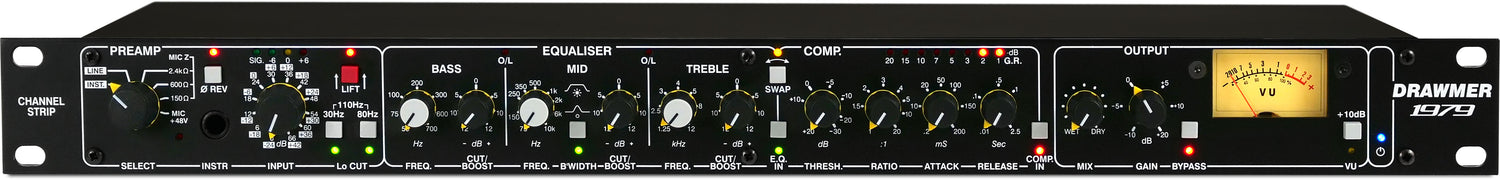 Le Drawmer 1979 est une tranche de console 1U moderne tout-en-un qui allie la précision analogique propre à la chaleur et la musicalité vintage. Conçu pour l'enregistrement, le mixage et le modelage du son, il comprend un préampli micro/ligne/instrument transparent, un module Lift unique, un égaliseur paramétrique 3 bandes entièrement variable, et un compresseur FET à attaque douce, tous conçus pour offrir un contrôle de signal professionnel en studio comme en live.