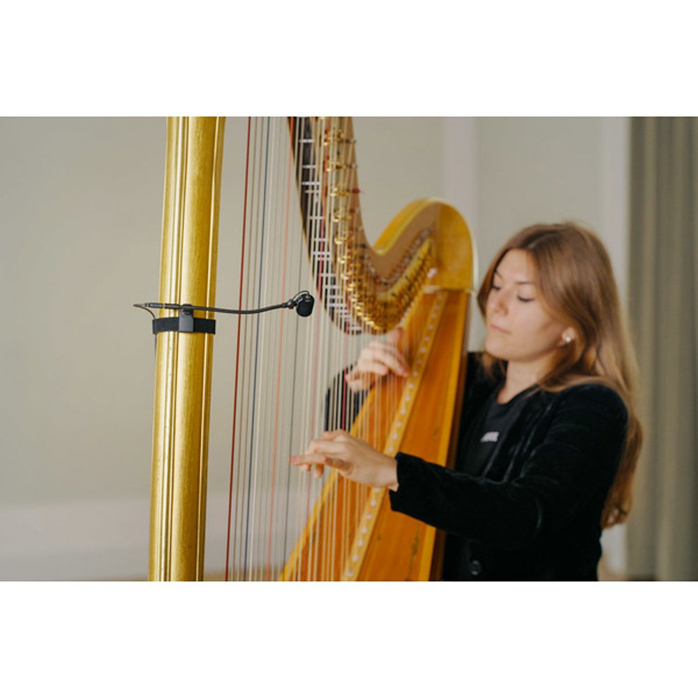 Support universel pour fixer la capsule et le col de cygne du système Miniature Clip Mic à un hautbois, une clarinette, une flûte, une flûte à bec, une harpe ou un basson. Le support col de cygne pivote et se verrouille par paliers de 45° pour un réglage optimal de l'orientation.