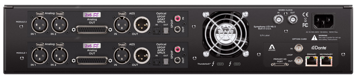 Logée dans le robuste châssis SYM2, cette configuration comprend deux modules 2x6 Special Edition, offrant un total de 4 entrées ligne et 12 sorties ligne, ainsi que des E/S numériques AES, optiques et coaxiales S/PDIF. Ces modules sont spécialement conçus pour une performance de qualité mastering, offrant la plus grande plage dynamique et la plus faible distorsion jamais atteintes par Apogee. Que vous routiez vers plusieurs ensembles d'enceintes, des processeurs externes ou des configurations surround/immersives, cette configuration est optimisée pour une intégrité du signal supérieure et un détail sonore précis.