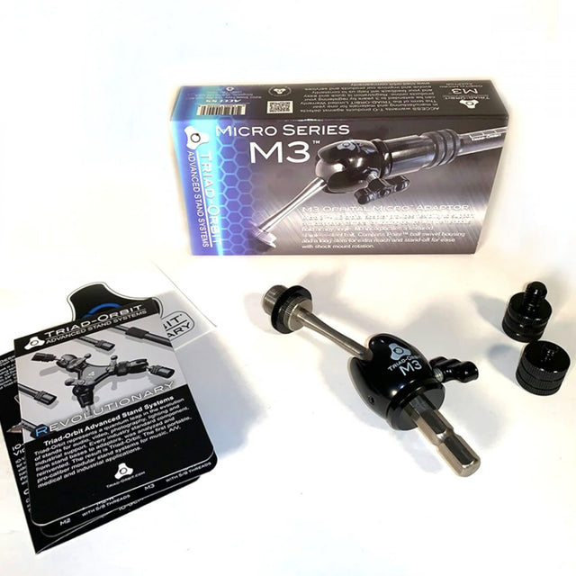 L'adaptateur orbital Micro 3-M3 offre une flexibilité optimale pour accueillir un microphone, une caméra ou un dispositif d'éclairage, avec un maintien exceptionnel quel que soit l'angle. Le M3 intègre une rotule en acier inoxydable texturé, un boîtier à 4 points et une tige de 3,8 cm pour une portée et une distance de sécurité accrues, facilitant ainsi la rotation de la suspension antichoc et le positionnement du panier. Un créneau plus profond sur le boîtier à 4 points offre une flexibilité accrue, au-delà des butées à 90° des trois autres créneaux.