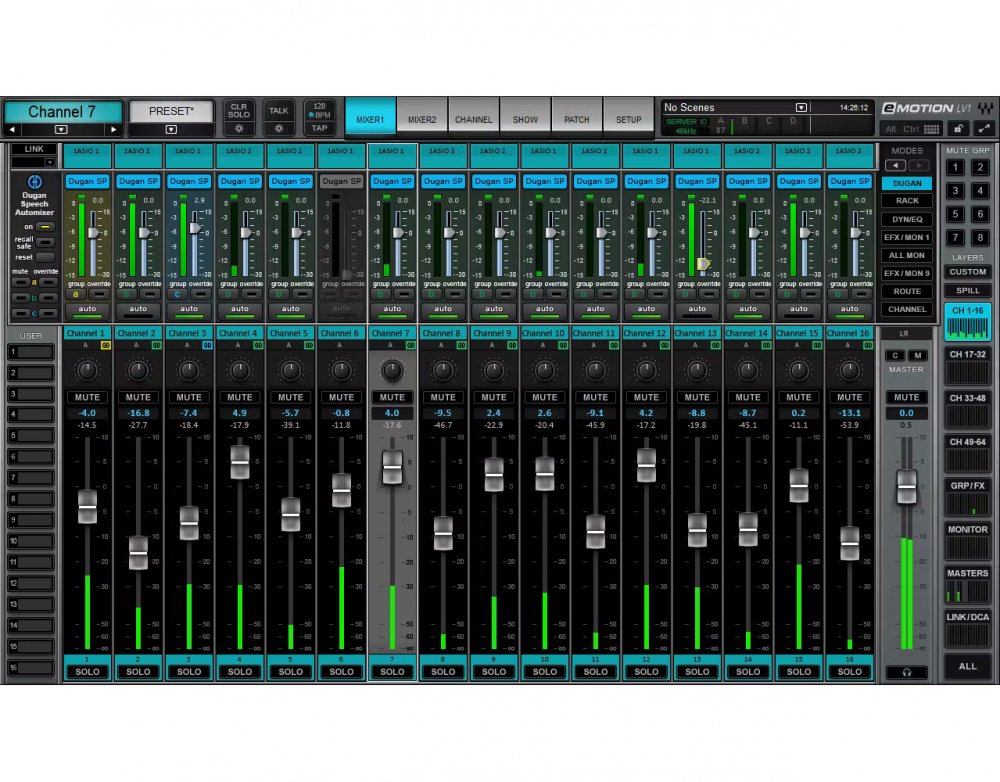Entièrement intégré à Waves eMotion LV1 et compatible avec SuperRack SoundGrid ou SuperRack Performer, Dugan Speech vous permet de gérer jusqu'à 64 canaux en toute simplicité. Il prend en charge les modes de mixage automatique et manuel, permet de remplacer des canaux spécifiques (comme le micro d'un animateur) et offre des contrôles de pondération pour prioriser les micros dans le mixage. Avec un indicateur de gain en temps réel et un mode « Recall Safe » pour verrouiller les paramètres lors des changements de scène, ce plugin apporte une finition digne d'une diffusion en direct grâce à des commandes simples et intuitives.