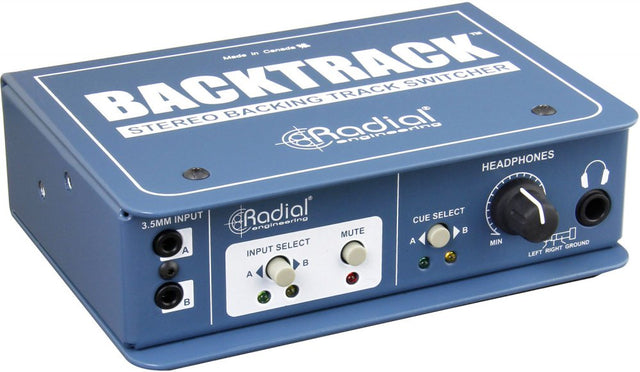 Le Backtrack est un commutateur audio stéréo compact, parfait pour les groupes exécutant des pistes d'accompagnement redondantes sur scène ou pour basculer entre n'importe quelle source audio stéréo.