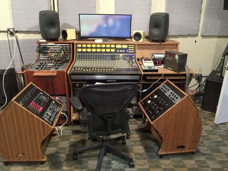 The JamRacks 12Pod™ Rack is a professional-grade studio furniture piece designed for audio enthusiasts who want a sturdy and stylish solution for organizing equipment. It offers 12 rack spaces, with 10 spaces angled upward for accessibility and 2 spaces below. Made from durable Moso bamboo, which is twice as hard as oak, the rack also includes heavy-duty casters, adjustable feet, and a back shelf. Its dimensions are approximately 21.125 inches wide, 23.5 inches deep, and 30 inches high.