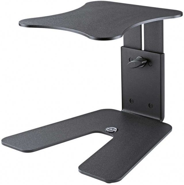 Attractive table stand for studio monitors and loudspeakers. The height adjustment is variable between 167 and 254 mm. 4 rubber pads each for floor and tray provide for stability and noise filtration. The recommended max. load is 15 kg. The support area (tray) dimensions are 230 x 250 mm.