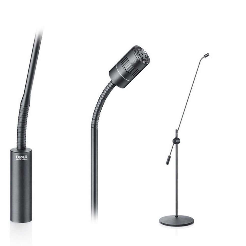 The floor stand features an elegant, non-reflective black surface, designed to withstand the rigors of TV studios, OB vans, theaters, and concert halls. Its integrated shock mounting solution minimizes handling noise, and the unique design allows for a long boom pole that stabilizes quickly after positioning. The modular nature of the microphone system enables easy reconfiguration with different DPA capsules and preamplifiers to adapt to various recording scenarios.