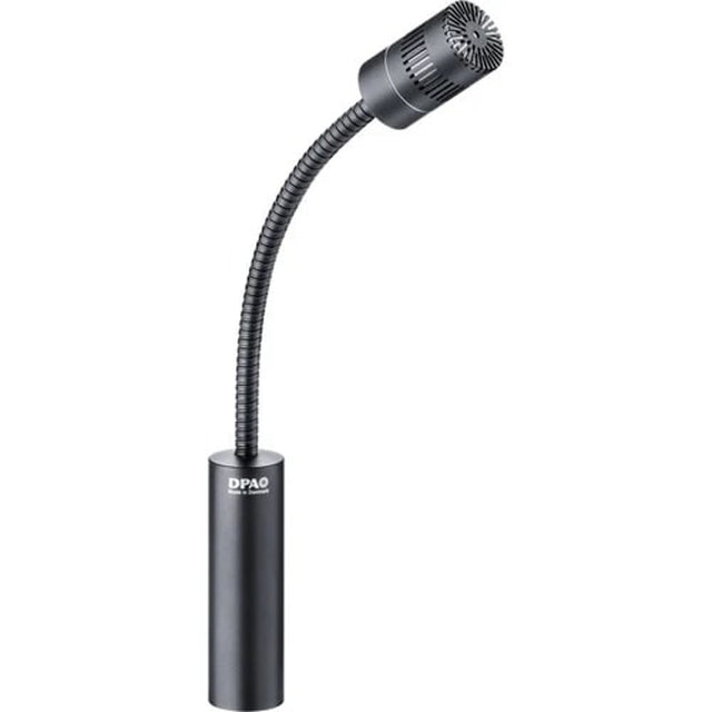 The DPA 4011-DF-G-B01-015 is a professional-grade cardioid condenser microphone mounted on a 15 cm (5.9-inch) gooseneck boom, designed for applications such as podiums, conference tables, and other settings requiring precise audio capture. Its cardioid polar pattern provides excellent off-axis rejection, ensuring focused sound pickup and minimizing unwanted ambient noise.