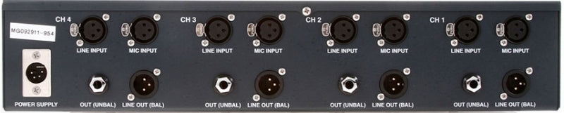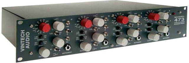 The 473 frequency choices are 3.2k and 12k for the highs and 60hz and 220hz on the low shelving but can be special ordered at other practical frequencies. Each channel also offers an input sensitivity adjustment allowing up to 70db of gain, an input impedance switch, a mic-line switch, an instrument input and switches for phantom power, phase reverse and eq on or off.