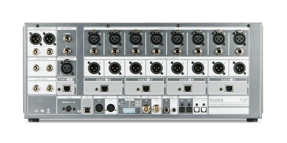 CAST link port for increasing summing mixer to 16-into-2 using Cranborne Audio 500ADAT (sold separately).