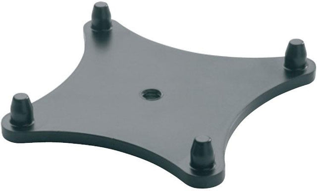 8000 series Genelec stand plates are designed for use together with the Iso-Pod that comes with all 8000 series monitors. The Iso-Pod allows you to tilt the monitor for optimal alignment. Simply mount the stand plate onto the 3/8" thread on the tube and ensure tight screw connection. Place the Iso-Pod over the four pins of the stand plate.