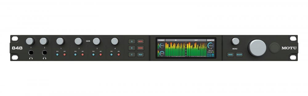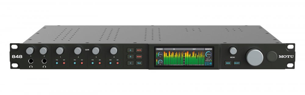 The MOTU 848 is a flagship 28-in/32-out interface that combines Thunderbolt 4 / USB4 universal connectivity with ESS Sabre32™ conversion for pristine, low-distortion audio (up to 125 dB DR). It's built for modern studios that need massive I/O, ultra-low latency, and powerful onboard DSP for mixing and effects-on Mac, Windows, or iOS.