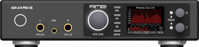 A Multitude of Devices compressed in one Housing The ADI-2/4 Pro SE is a 2-channel analog input to digital and 4-channel digital to analog output converter in a half-rack (9.5") enclosure of 1 U height. Latest 32 bit / 768 kHz converters offer up to 123 dBA signal to noise ratio. Reference class tech specs throughout are combined with an unprecedented feature set. A powerful DSP adds all kinds of useful audio processing, including 5-band parametric EQ, fast Bass/Treble adjustment, Crossfeed, and a new concept in Loudness sound control.