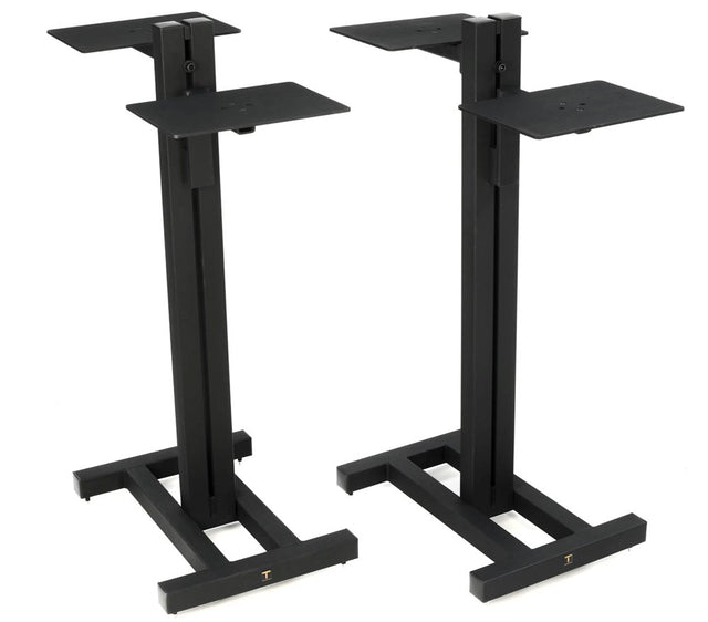 Sound Anchor Studio Monitor Stand for 2 Speakers ADJ3 are designed to allow the engineer to correctly place two pairs of monitors behind the console. These stands allow independent height and tilt adjustment of both monitors. The ADJ3 stand is based on our proven ADJ1 stands and offers all of the same performance benefits. The symmetrical bases and the uprights are filled and damped from the factory. This makes the ADJ3 a very solid and stable support for your speakers. The speaker platforms are made of 1/4" aluminum which reduces the amount of energy that gets transferred into the stand. The Sound Anchor ADJ3 stands isolate the speakers from the console, each other and the floor which gives you a cleaner, more detailed and more accurate sound.