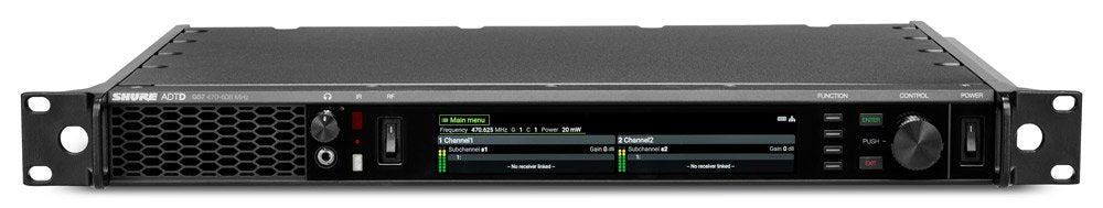 The ADTD Wireless Dual Transmitter reimagines in-ear monitoring wireless transmission. Groundbreaking performance features " including scalable channel count*, Multichannel Wideband RF, and Spatial Diversity Transmission " ensures faultless performance in the most challenging RF environments. ShowLink remote control, networkable monitoring with Wireless Workbench, analog and digital (AES3, AES67, Dante) inputs, and internal antenna combining, bring a new level of management and flexibility to your entire in-ear monitor workflow. Axient Digital PSM ADTD is compatible with the Axient Digital PSM ADXR Bodypack Receiver.