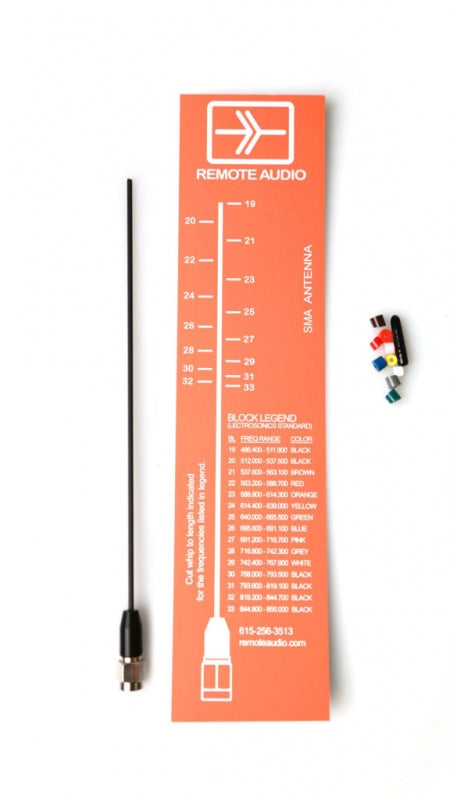 Recommended for Lectrosonics, Zaxcom, or any other UHF Receiver or Transmitter using SMA connectors operating between 500-900 MHz (Lectro Blocks 21-33). Includes frequency trimming chart and color coding bands.