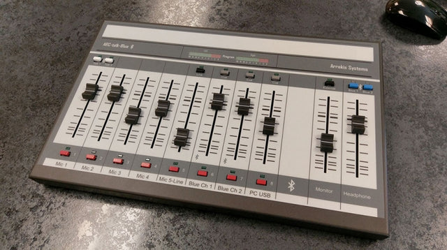 With a single stereo mixing bus, the ARC-8-Blue, bluetooth-ready broadcast console is ideal for fast paced live on air, production, Internet streaming and remote applications.