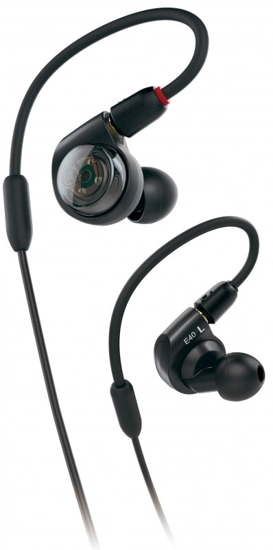 The ATH-E40 features specially designed housings that provide incredible isolation. The isolation - and the comfort - are enhanced by the four sizes of included silicone eartips (XS/S/M/L), which allow you to create a custom fit. The headphones also come with a detachable 1.6 m (5.2') cable, with newly developed A2DC (Audio Designed Detachable Coaxial) connectors at the headphones and a 3.5 mm (1/8") stereo mini-plug output, and a carrying case.