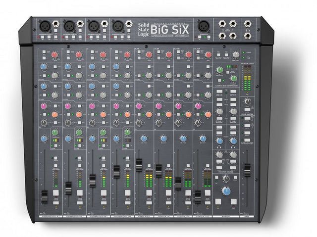 Advanced hybrid production BiG SiX combines production tools from iconic SSL studio consoles with the latest in hybrid workflow. G-Series Bus Compressor with renowned ‘Auto' release, E-Series EQ, glorious sounding mic pres with channel processing, and advanced monitoring and routing, all designed on a SuperAnalogueTM foundation and brought together with full USB integration. BiG SiX is the essential SSL studio.